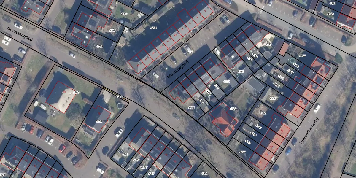 Het perceel waarop Muntersgoed 17 staat heeft een oppervlakte van 224 m². Dit is een middelgroot perceel. De perceeloppervlakte wordt geregistreerd door het Kadaster. Gedetailleerde informatie over de maten van dit perceel kunt u vinden in het rapport Kadastrale kaart met maatvoering van Muntersgoed 17.