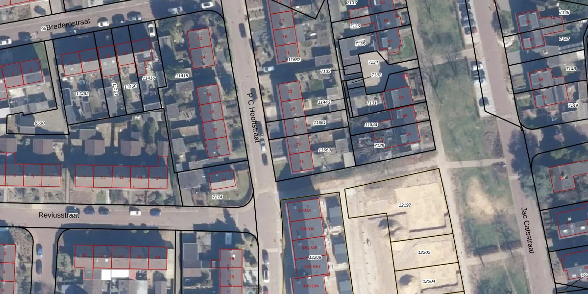 Het perceel waarop P C Hooftstraat 29 staat heeft een oppervlakte van 382 m². Dit is een groot perceel. De perceeloppervlakte wordt geregistreerd door het Kadaster. Gedetailleerde informatie over de maten van dit perceel kunt u vinden in het rapport Kadastrale kaart met maatvoering van P C Hooftstraat 29.