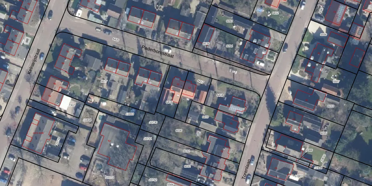 Paderbornstraat 12 is gelegen op kadastraal perceel PTN01C6417. Deze kadastrale aanduiding is uniek en wordt gebruikt door het Kadaster om eigendomsrechten en andere zakelijke rechten vast te leggen. Het perceel maakt onderdeel uit van de kadastrale gemeente Putten.