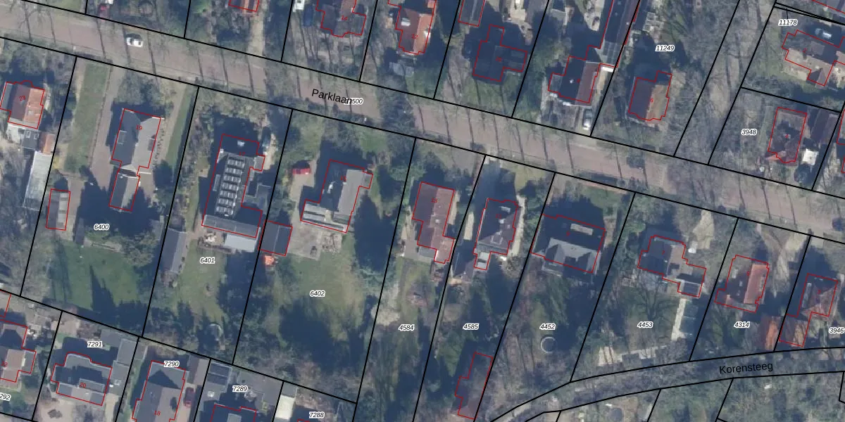 Het perceel waarop Parklaan 13 staat heeft een oppervlakte van 1260 m². Dit is een zeer groot perceel. De perceeloppervlakte wordt geregistreerd door het Kadaster. Gedetailleerde informatie over de maten van dit perceel kunt u vinden in het rapport Kadastrale kaart met maatvoering van Parklaan 13.