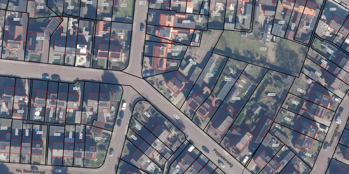 Peppelerweg 1 is gelegen op kadastraal perceel PTN01C6602. Deze kadastrale aanduiding is uniek en wordt gebruikt door het Kadaster om eigendomsrechten en andere zakelijke rechten vast te leggen. Het perceel maakt onderdeel uit van de kadastrale gemeente Putten.