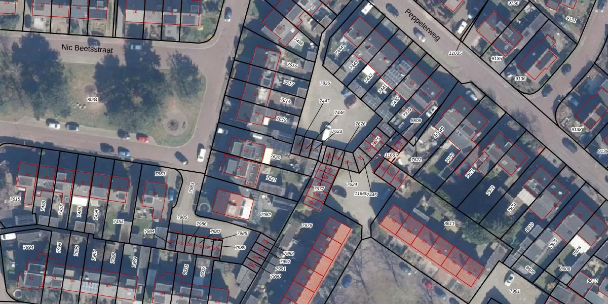 Gebruik de zoekbalk of klik op een perceel voor informatie over de adressen binnen dit perceel.