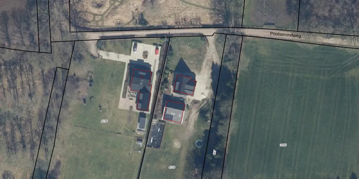 Het perceel waarop Poolserondweg 4 staat heeft een oppervlakte van 4340 m². Dit is een zeer groot perceel. De perceeloppervlakte wordt geregistreerd door het Kadaster. Gedetailleerde informatie over de maten van dit perceel kunt u vinden in het rapport Kadastrale kaart met maatvoering van Poolserondweg 4.