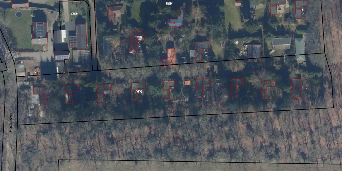 Poolseweg 17-35 is gelegen op kadastraal perceel PTN01E1111. Deze kadastrale aanduiding is uniek en wordt gebruikt door het Kadaster om eigendomsrechten en andere zakelijke rechten vast te leggen. Het perceel maakt onderdeel uit van de kadastrale gemeente Putten.