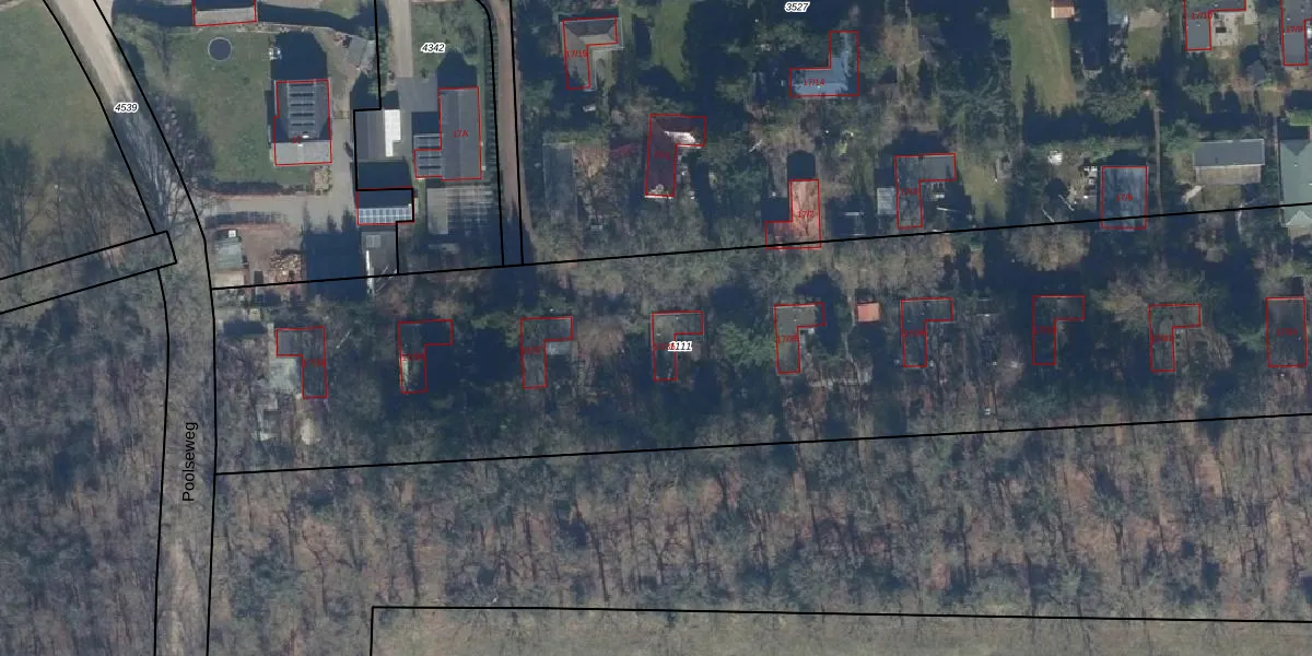 Poolseweg 17-36 is gelegen op kadastraal perceel PTN01E1111. Deze kadastrale aanduiding is uniek en wordt gebruikt door het Kadaster om eigendomsrechten en andere zakelijke rechten vast te leggen. Het perceel maakt onderdeel uit van de kadastrale gemeente Putten.