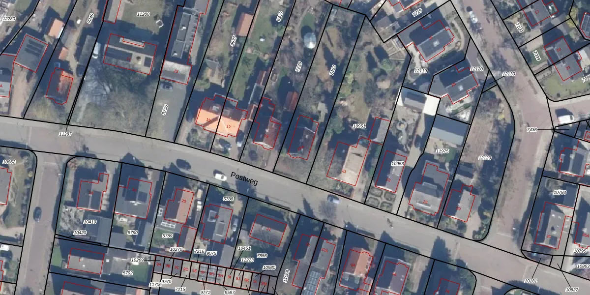 Het perceel waarop Postweg 19-A staat heeft een oppervlakte van 731 m². Dit is een groot perceel. De perceeloppervlakte wordt geregistreerd door het Kadaster. Gedetailleerde informatie over de maten van dit perceel kunt u vinden in het rapport Kadastrale kaart met maatvoering van Postweg 19-A.