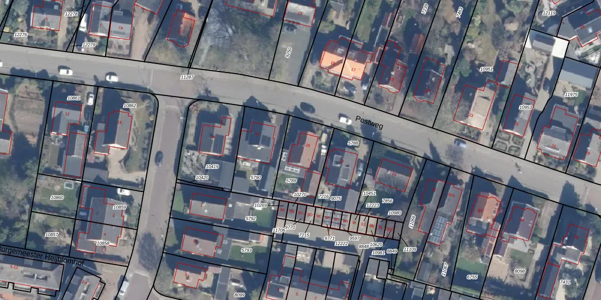 Het perceel waarop Postweg 20 staat heeft een oppervlakte van 400 m². Dit is een groot perceel. De perceeloppervlakte wordt geregistreerd door het Kadaster. Gedetailleerde informatie over de maten van dit perceel kunt u vinden in het rapport Kadastrale kaart met maatvoering van Postweg 20.