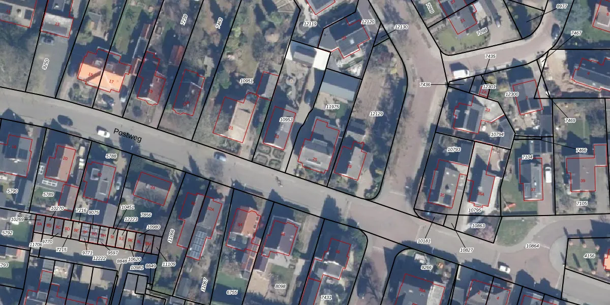 Postweg 25 is gelegen op kadastraal perceel PTN01C11975. Deze kadastrale aanduiding is uniek en wordt gebruikt door het Kadaster om eigendomsrechten en andere zakelijke rechten vast te leggen. Het perceel maakt onderdeel uit van de kadastrale gemeente Putten.