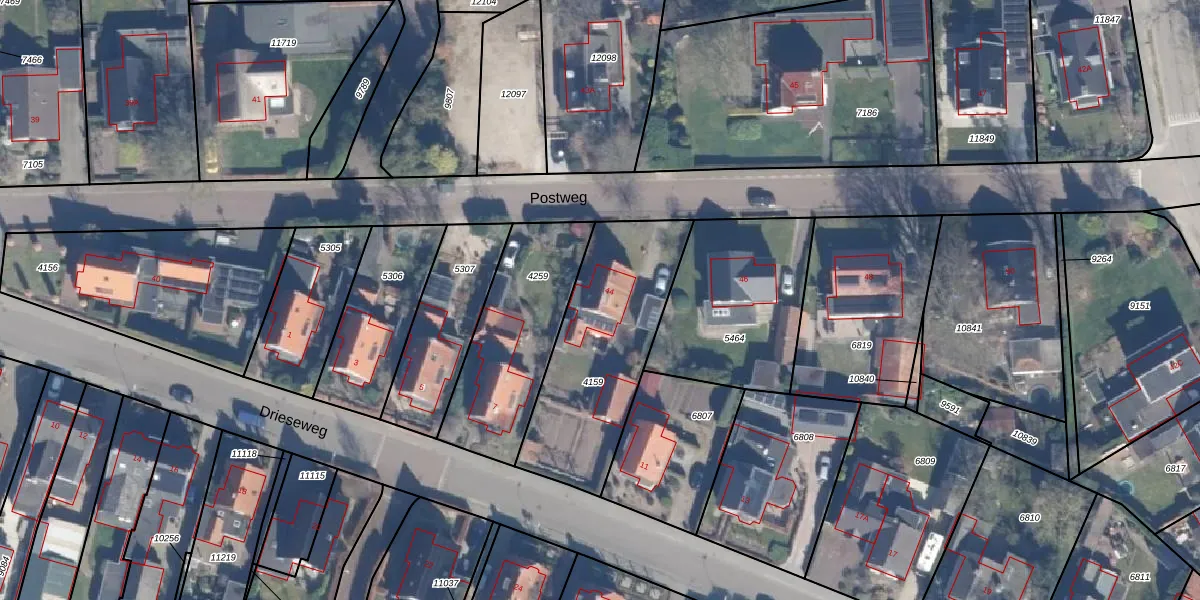 Het perceel waarop Postweg 44 staat heeft een oppervlakte van 715 m². Dit is een groot perceel. De perceeloppervlakte wordt geregistreerd door het Kadaster. Gedetailleerde informatie over de maten van dit perceel kunt u vinden in het rapport Kadastrale kaart met maatvoering van Postweg 44.