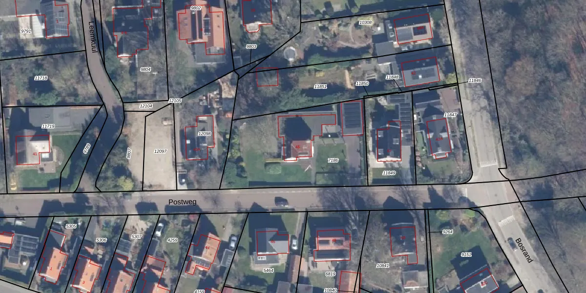 Gebruik de zoekbalk of klik op een perceel voor informatie over de adressen binnen dit perceel.