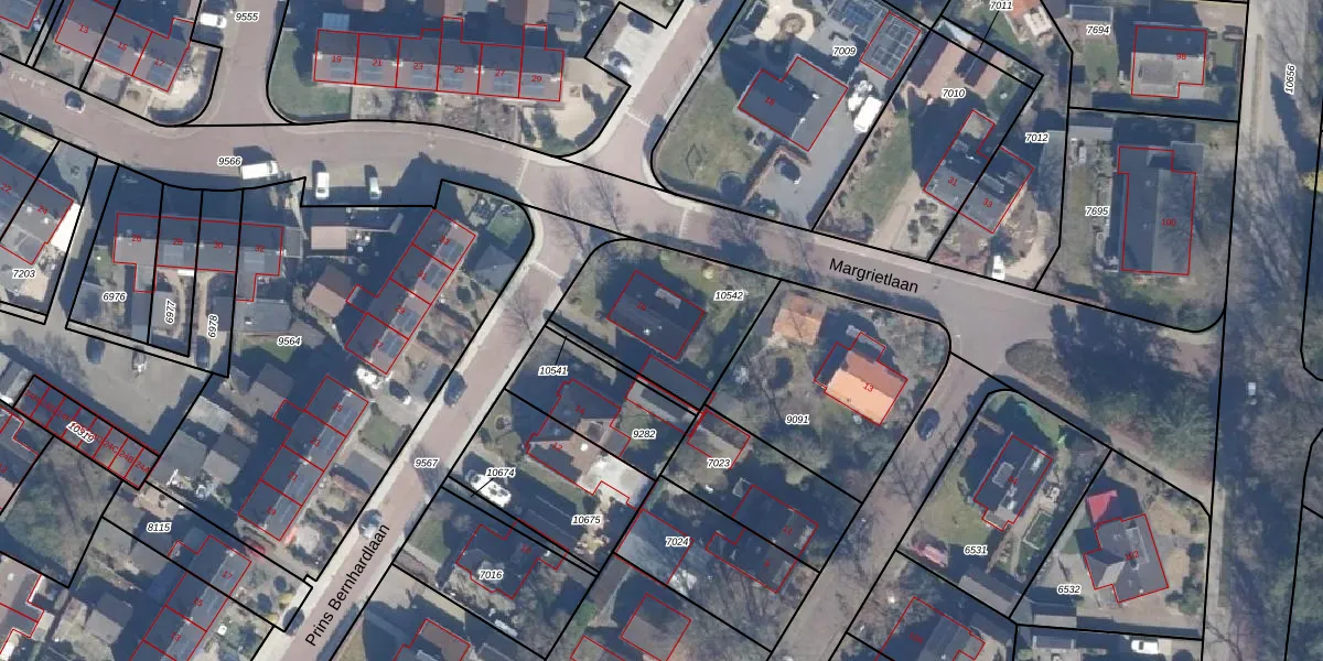 Het perceel waarop Prins Bernhardlaan 16 staat heeft een oppervlakte van 532 m². Dit is een groot perceel. De perceeloppervlakte wordt geregistreerd door het Kadaster. Gedetailleerde informatie over de maten van dit perceel kunt u vinden in het rapport Kadastrale kaart met maatvoering van Prins Bernhardlaan 16.