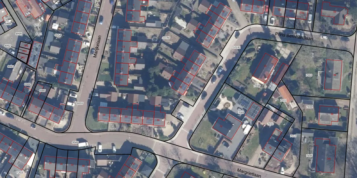 Het perceel waarop Prins Bernhardlaan 35 staat heeft een oppervlakte van 5955 m². Dit is een zeer groot perceel. De perceeloppervlakte wordt geregistreerd door het Kadaster. Gedetailleerde informatie over de maten van dit perceel kunt u vinden in het rapport Kadastrale kaart met maatvoering van Prins Bernhardlaan 35.
