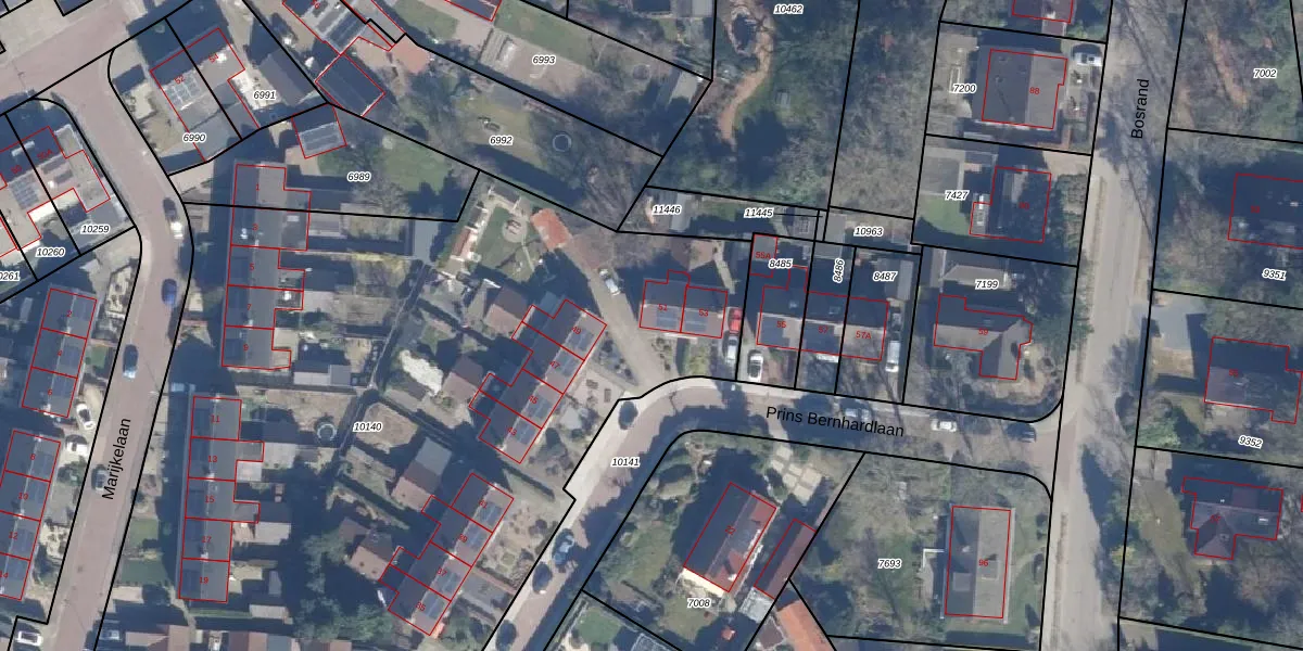 Het perceel waarop Prins Bernhardlaan 51 staat heeft een oppervlakte van 5955 m². Dit is een zeer groot perceel. De perceeloppervlakte wordt geregistreerd door het Kadaster. Gedetailleerde informatie over de maten van dit perceel kunt u vinden in het rapport Kadastrale kaart met maatvoering van Prins Bernhardlaan 51.
