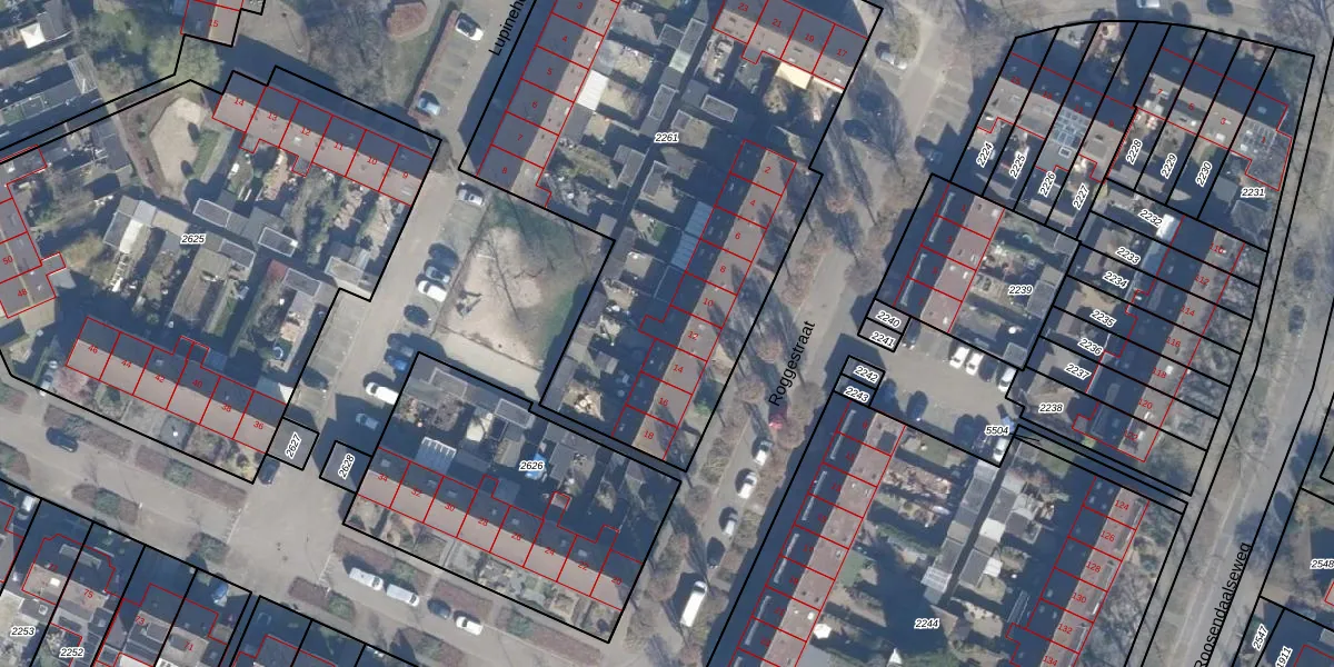 Het perceel waarop Roggestraat 12 staat heeft een oppervlakte van 2886 m². Dit is een zeer groot perceel. De perceeloppervlakte wordt geregistreerd door het Kadaster. Gedetailleerde informatie over de maten van dit perceel kunt u vinden in het rapport Kadastrale kaart met maatvoering van Roggestraat 12.
