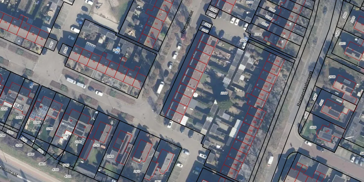Het perceel waarop Roggestraat 21 staat heeft een oppervlakte van 3525 m². Dit is een zeer groot perceel. De perceeloppervlakte wordt geregistreerd door het Kadaster. Gedetailleerde informatie over de maten van dit perceel kunt u vinden in het rapport Kadastrale kaart met maatvoering van Roggestraat 21.