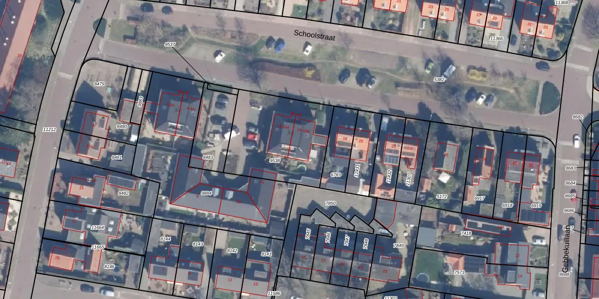 Het perceel waarop Schoolstraat 16-A staat heeft een oppervlakte van 908 m². Dit is een groot perceel. De perceeloppervlakte wordt geregistreerd door het Kadaster. Gedetailleerde informatie over de maten van dit perceel kunt u vinden in het rapport Kadastrale kaart met maatvoering van Schoolstraat 16-A.