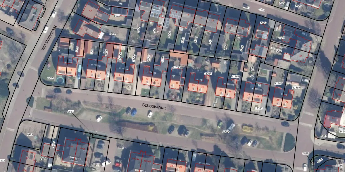 Het perceel waarop Schoolstraat 17 staat heeft een oppervlakte van 302 m². Dit is een groot perceel. De perceeloppervlakte wordt geregistreerd door het Kadaster. Gedetailleerde informatie over de maten van dit perceel kunt u vinden in het rapport Kadastrale kaart met maatvoering van Schoolstraat 17.