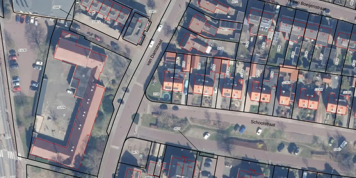 Het perceel waarop Schoolstraat 3 staat heeft een oppervlakte van 249 m². Dit is een middelgroot perceel. De perceeloppervlakte wordt geregistreerd door het Kadaster. Gedetailleerde informatie over de maten van dit perceel kunt u vinden in het rapport Kadastrale kaart met maatvoering van Schoolstraat 3.