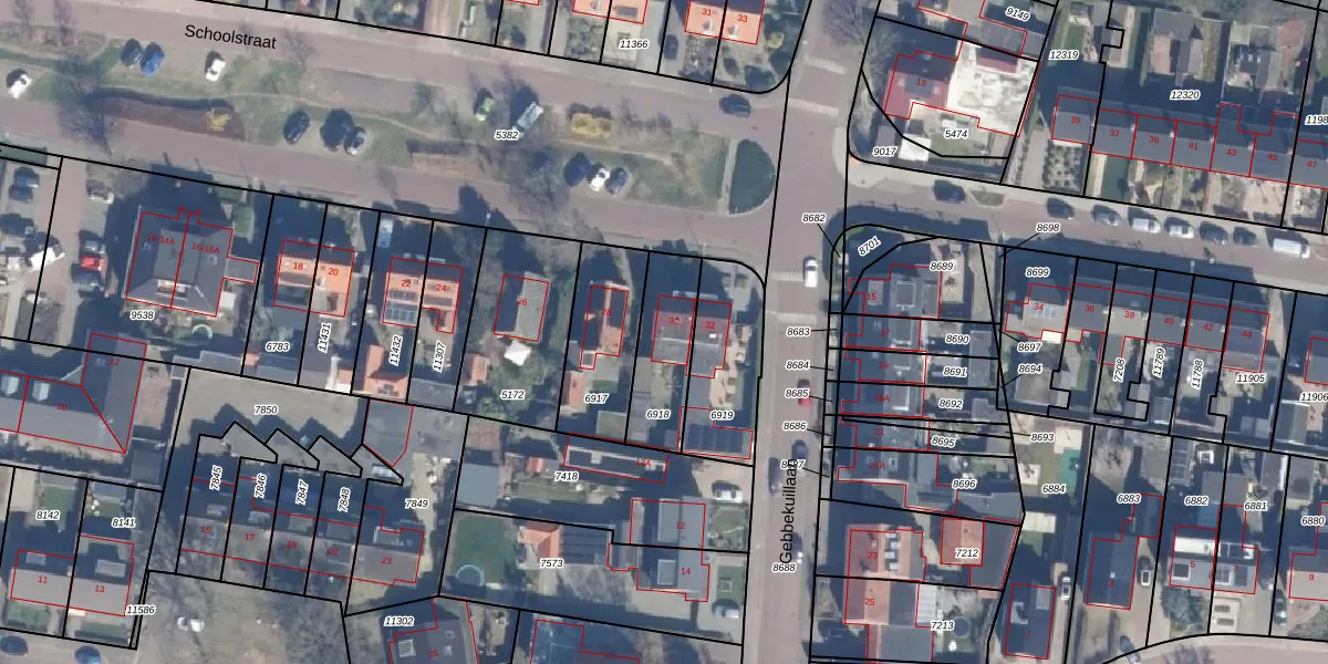 Het perceel waarop Schoolstraat 30 staat heeft een oppervlakte van 230 m². Dit is een middelgroot perceel. De perceeloppervlakte wordt geregistreerd door het Kadaster. Gedetailleerde informatie over de maten van dit perceel kunt u vinden in het rapport Kadastrale kaart met maatvoering van Schoolstraat 30.