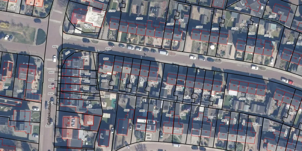 Gebruik de zoekbalk of klik op een perceel voor informatie over de adressen binnen dit perceel.