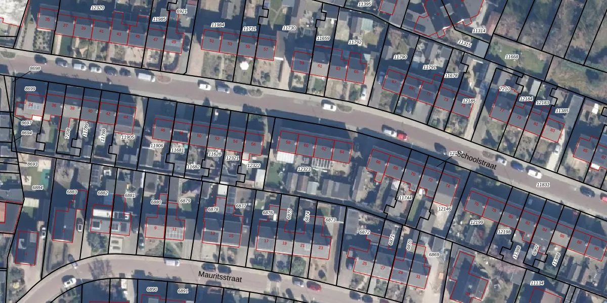 Het perceel waarop Schoolstraat 60 staat heeft een oppervlakte van 1071 m². Dit is een zeer groot perceel. De perceeloppervlakte wordt geregistreerd door het Kadaster. Gedetailleerde informatie over de maten van dit perceel kunt u vinden in het rapport Kadastrale kaart met maatvoering van Schoolstraat 60.