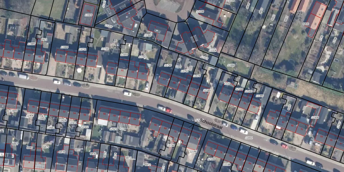 Het perceel waarop Schoolstraat 69 staat heeft een oppervlakte van 317 m². Dit is een groot perceel. De perceeloppervlakte wordt geregistreerd door het Kadaster. Gedetailleerde informatie over de maten van dit perceel kunt u vinden in het rapport Kadastrale kaart met maatvoering van Schoolstraat 69.