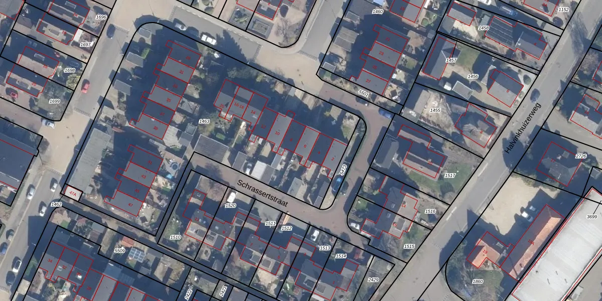 Het perceel waarop Schrassertstraat 6 staat heeft een oppervlakte van 3715 m². Dit is een zeer groot perceel. De perceeloppervlakte wordt geregistreerd door het Kadaster. Gedetailleerde informatie over de maten van dit perceel kunt u vinden in het rapport Kadastrale kaart met maatvoering van Schrassertstraat 6.