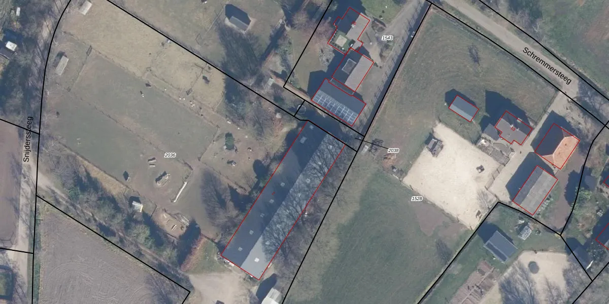 Het perceel waarop Snijderssteeg 2 staat heeft een oppervlakte van 7325 m². Dit is een zeer groot perceel. De perceeloppervlakte wordt geregistreerd door het Kadaster. Gedetailleerde informatie over de maten van dit perceel kunt u vinden in het rapport Kadastrale kaart met maatvoering van Snijderssteeg 2.
