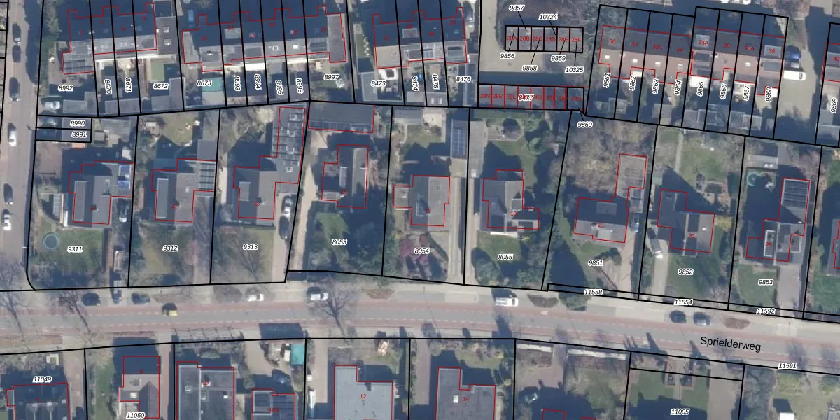 Het perceel waarop Sprielderweg 17 staat heeft een oppervlakte van 773 m². Dit is een groot perceel. De perceeloppervlakte wordt geregistreerd door het Kadaster. Gedetailleerde informatie over de maten van dit perceel kunt u vinden in het rapport Kadastrale kaart met maatvoering van Sprielderweg 17.