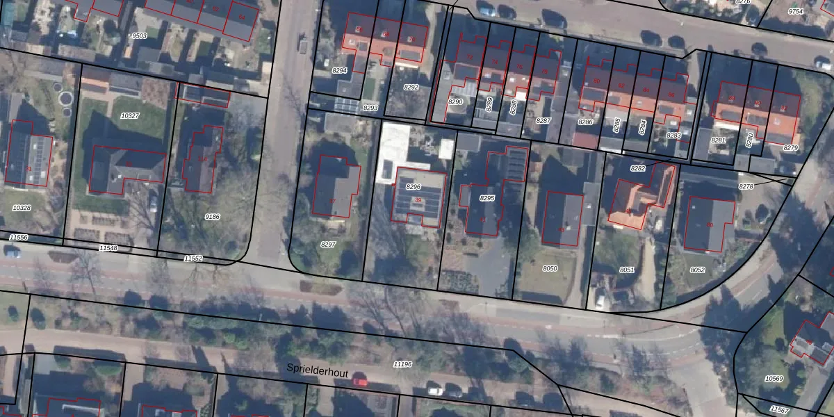 Sprielderweg 39 is gelegen op kadastraal perceel PTN01C8296. Deze kadastrale aanduiding is uniek en wordt gebruikt door het Kadaster om eigendomsrechten en andere zakelijke rechten vast te leggen. Het perceel maakt onderdeel uit van de kadastrale gemeente Putten.