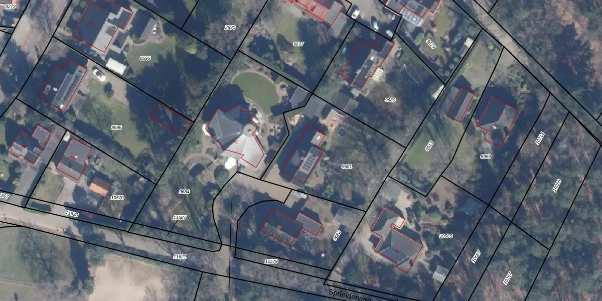 Het perceel waarop Sprielderweg 53 staat heeft een oppervlakte van 1075 m². Dit is een zeer groot perceel. De perceeloppervlakte wordt geregistreerd door het Kadaster. Gedetailleerde informatie over de maten van dit perceel kunt u vinden in het rapport Kadastrale kaart met maatvoering van Sprielderweg 53.