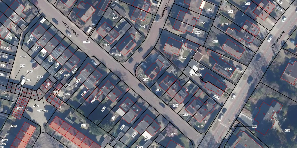 Gebruik de zoekbalk of klik op een perceel voor informatie over de adressen binnen dit perceel.