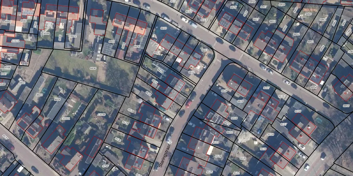 Het perceel waarop Staringstraat 2 staat heeft een oppervlakte van 269 m². Dit is een middelgroot perceel. De perceeloppervlakte wordt geregistreerd door het Kadaster. Gedetailleerde informatie over de maten van dit perceel kunt u vinden in het rapport Kadastrale kaart met maatvoering van Staringstraat 2.