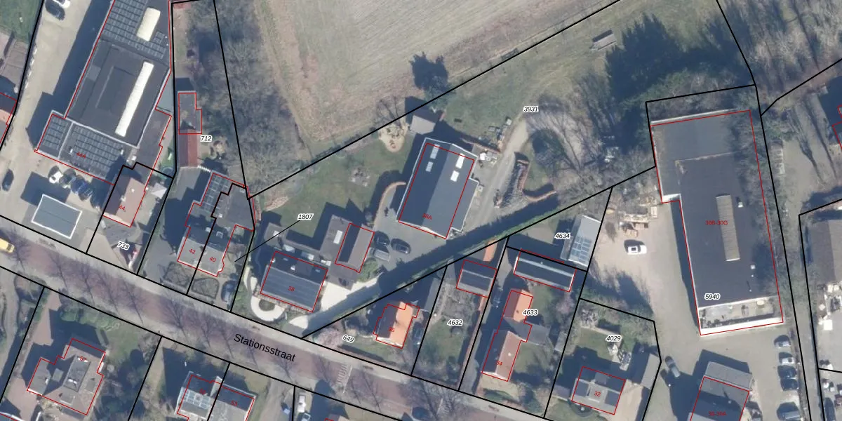 Het perceel waarop Stationsstraat 38-A staat heeft een oppervlakte van 4515 m². Dit is een zeer groot perceel. De perceeloppervlakte wordt geregistreerd door het Kadaster. Gedetailleerde informatie over de maten van dit perceel kunt u vinden in het rapport Kadastrale kaart met maatvoering van Stationsstraat 38-A.