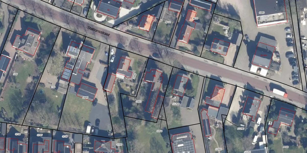 Het perceel waarop Stationsstraat 49-A staat heeft een oppervlakte van 813 m². Dit is een groot perceel. De perceeloppervlakte wordt geregistreerd door het Kadaster. Gedetailleerde informatie over de maten van dit perceel kunt u vinden in het rapport Kadastrale kaart met maatvoering van Stationsstraat 49-A.