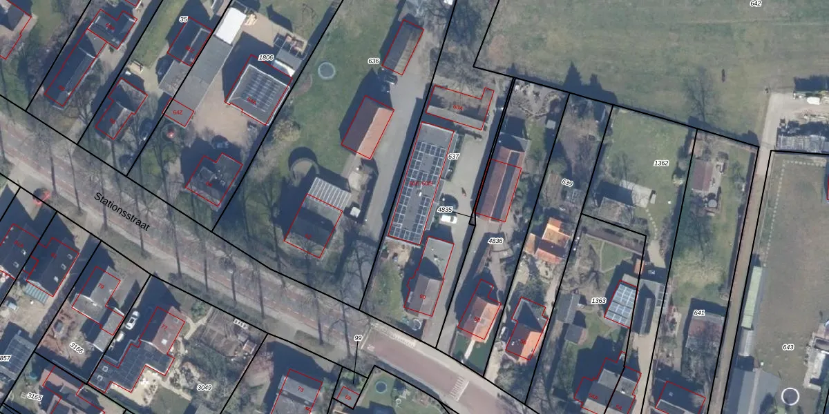 Het perceel waarop Stationsstraat 60-2 staat heeft een oppervlakte van 1590 m². Dit is een zeer groot perceel. De perceeloppervlakte wordt geregistreerd door het Kadaster. Gedetailleerde informatie over de maten van dit perceel kunt u vinden in het rapport Kadastrale kaart met maatvoering van Stationsstraat 60-2.
