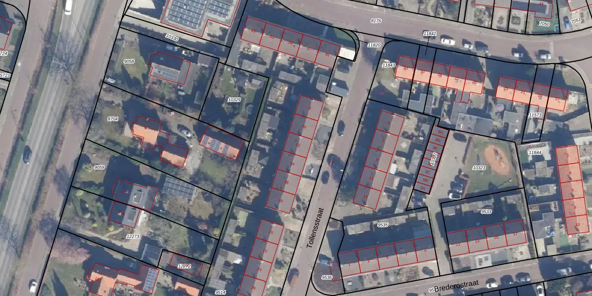 Het perceel waarop Tollensstraat 12 staat heeft een oppervlakte van 6260 m². Dit is een zeer groot perceel. De perceeloppervlakte wordt geregistreerd door het Kadaster. Gedetailleerde informatie over de maten van dit perceel kunt u vinden in het rapport Kadastrale kaart met maatvoering van Tollensstraat 12.