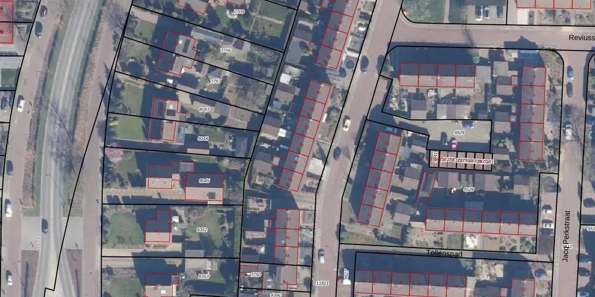Het perceel waarop Tollensstraat 54 staat heeft een oppervlakte van 6260 m². Dit is een zeer groot perceel. De perceeloppervlakte wordt geregistreerd door het Kadaster. Gedetailleerde informatie over de maten van dit perceel kunt u vinden in het rapport Kadastrale kaart met maatvoering van Tollensstraat 54.