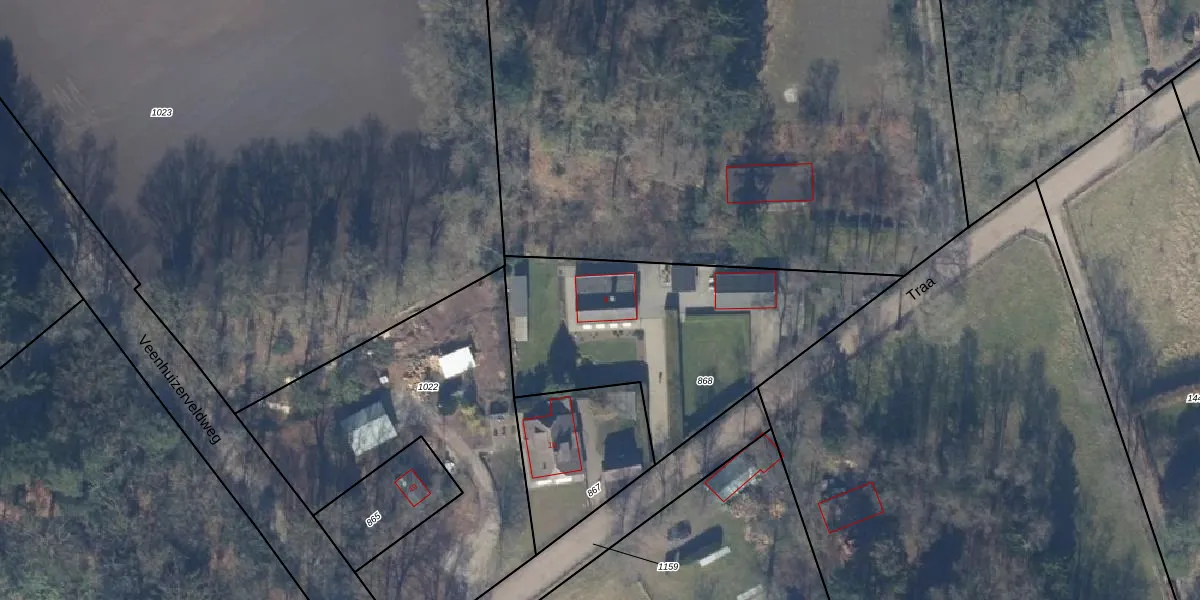 Het perceel waarop Traa 8 staat heeft een oppervlakte van 1185 m². Dit is een zeer groot perceel. De perceeloppervlakte wordt geregistreerd door het Kadaster. Gedetailleerde informatie over de maten van dit perceel kunt u vinden in het rapport Kadastrale kaart met maatvoering van Traa 8.