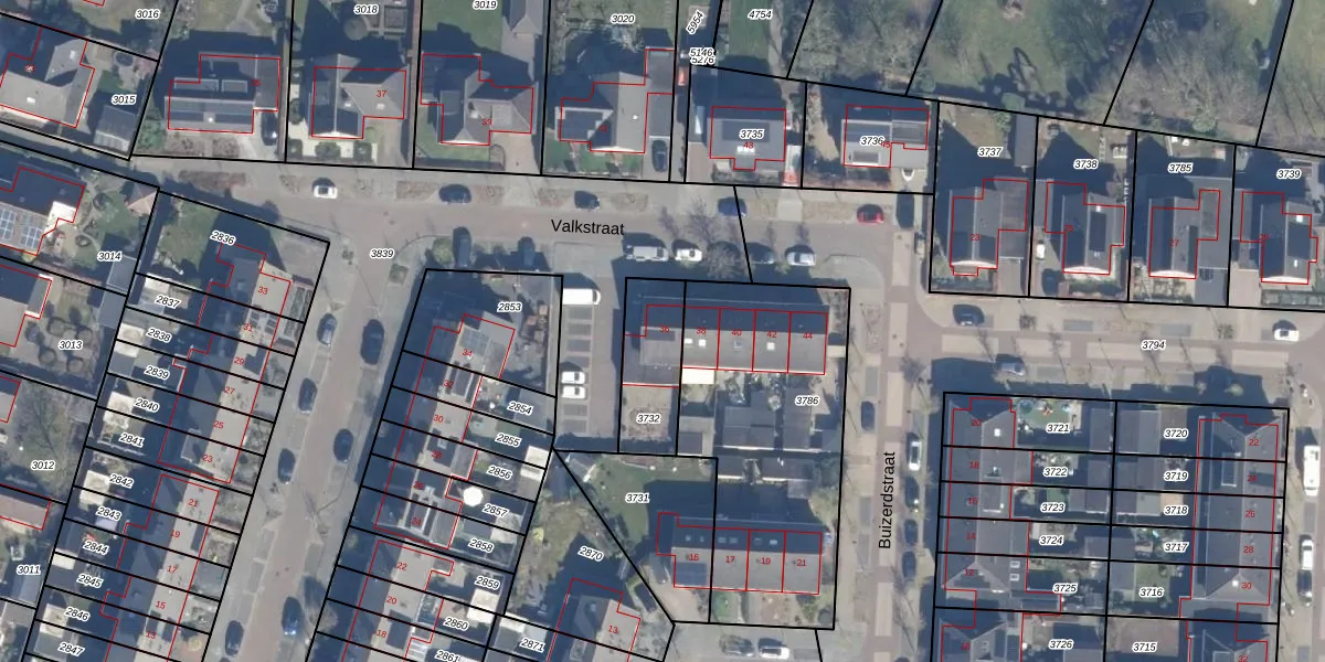 Valkstraat 36 is gelegen op kadastraal perceel PTN01N3732. Deze kadastrale aanduiding is uniek en wordt gebruikt door het Kadaster om eigendomsrechten en andere zakelijke rechten vast te leggen. Het perceel maakt onderdeel uit van de kadastrale gemeente Putten.
