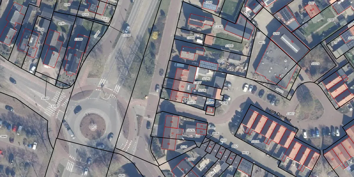 Gebruik de zoekbalk of klik op een perceel voor informatie over de adressen binnen dit perceel.