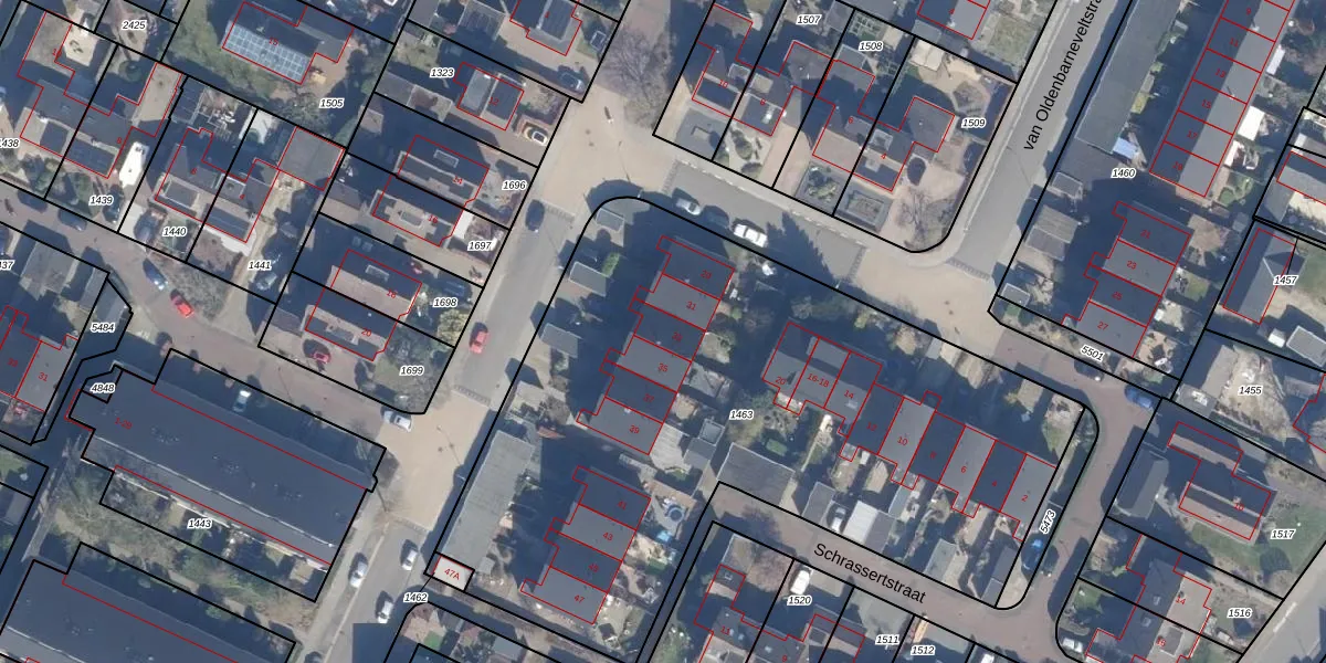 Het perceel waarop van Oldenbarneveltstraat 33 staat heeft een oppervlakte van 3715 m². Dit is een zeer groot perceel. De perceeloppervlakte wordt geregistreerd door het Kadaster. Gedetailleerde informatie over de maten van dit perceel kunt u vinden in het rapport Kadastrale kaart met maatvoering van van Oldenbarneveltstraat 33.