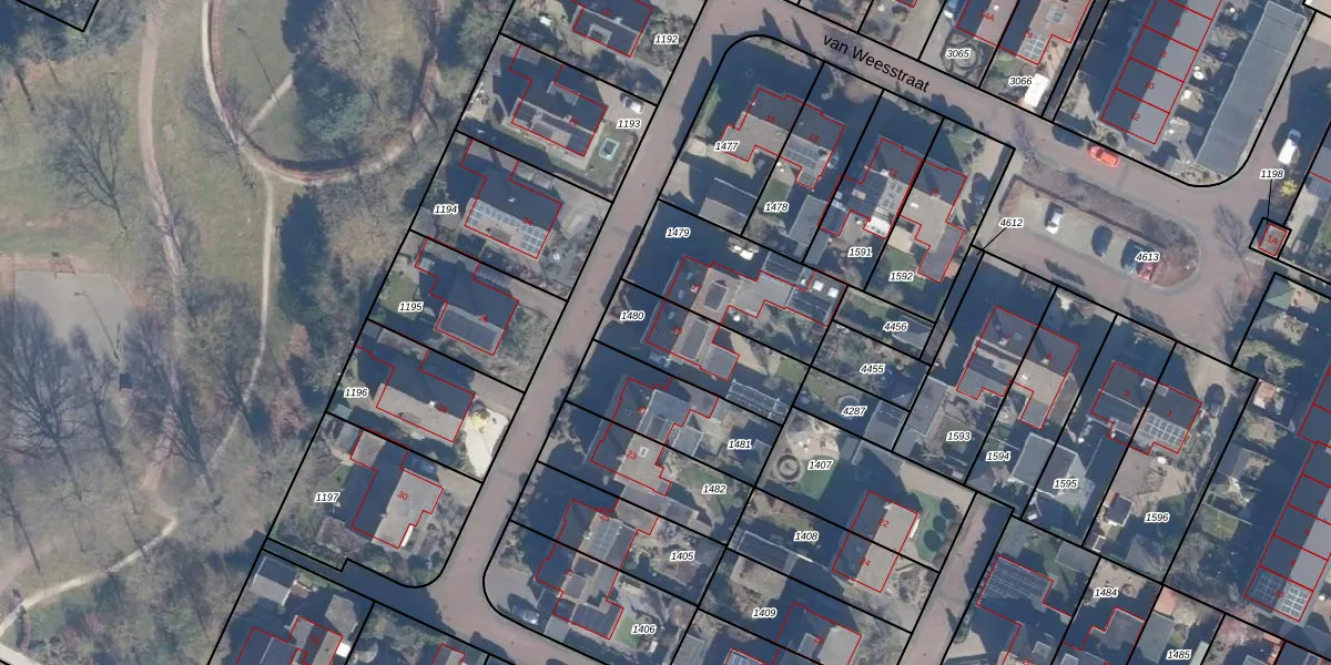 Het perceel waarop van Weesstraat 19 staat heeft een oppervlakte van 312 m². Dit is een groot perceel. De perceeloppervlakte wordt geregistreerd door het Kadaster. Gedetailleerde informatie over de maten van dit perceel kunt u vinden in het rapport Kadastrale kaart met maatvoering van van Weesstraat 19.