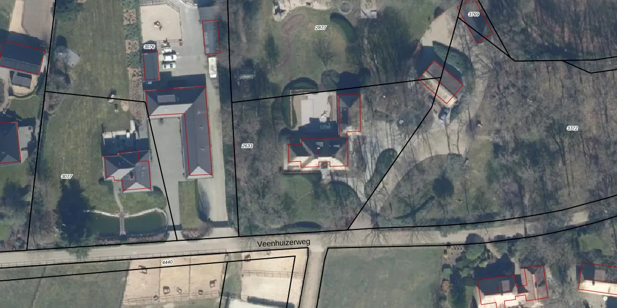 Het perceel waarop Veenhuizerweg 7 staat heeft een oppervlakte van 2360 m². Dit is een zeer groot perceel. De perceeloppervlakte wordt geregistreerd door het Kadaster. Gedetailleerde informatie over de maten van dit perceel kunt u vinden in het rapport Kadastrale kaart met maatvoering van Veenhuizerweg 7.