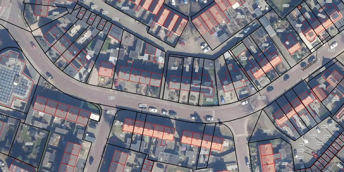 Gebruik de zoekbalk of klik op een perceel voor informatie over de adressen binnen dit perceel.