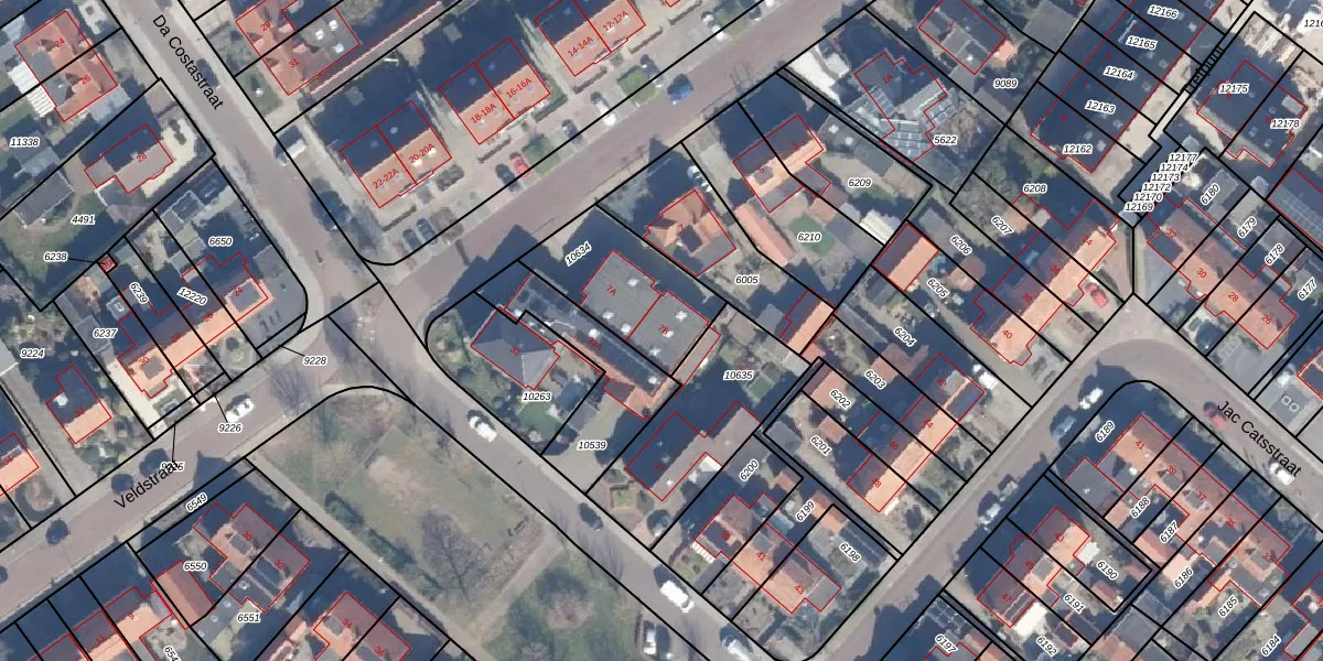 Het perceel waarop Veldstraat 7-B staat heeft een oppervlakte van 375 m². Dit is een groot perceel. De perceeloppervlakte wordt geregistreerd door het Kadaster. Gedetailleerde informatie over de maten van dit perceel kunt u vinden in het rapport Kadastrale kaart met maatvoering van Veldstraat 7-B.