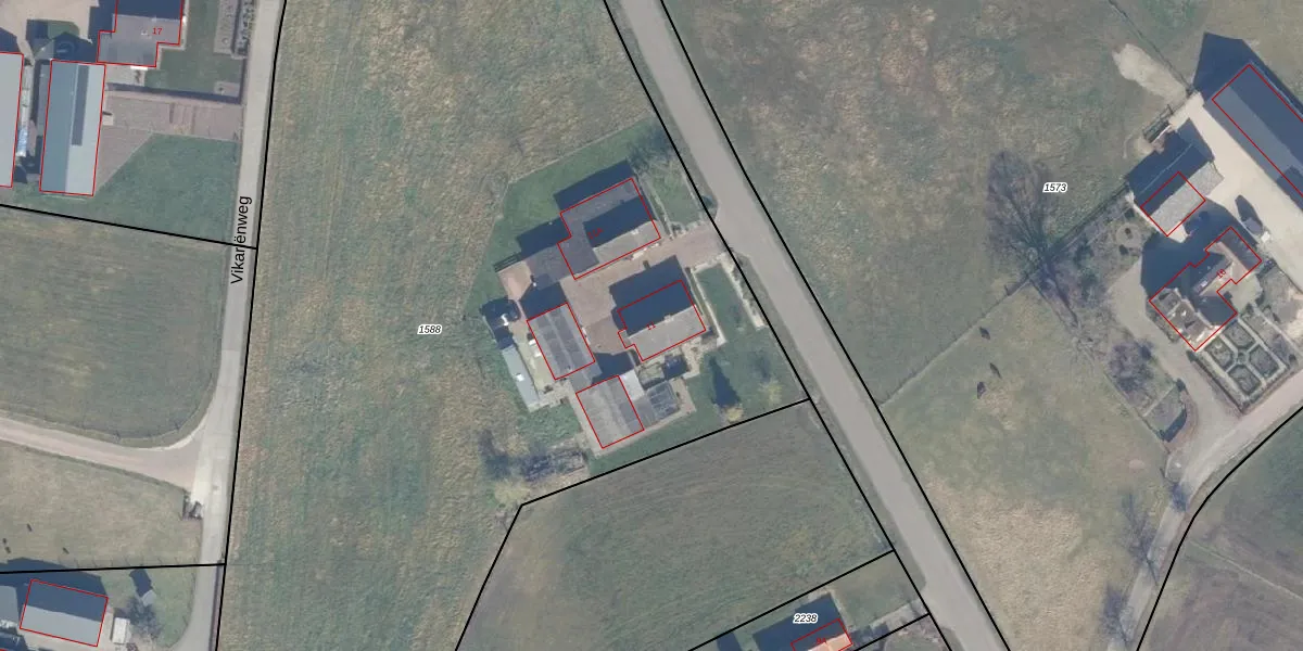 Het perceel waarop Vikariënweg 11 staat heeft een oppervlakte van 9270 m². Dit is een zeer groot perceel. De perceeloppervlakte wordt geregistreerd door het Kadaster. Gedetailleerde informatie over de maten van dit perceel kunt u vinden in het rapport Kadastrale kaart met maatvoering van Vikariënweg 11.