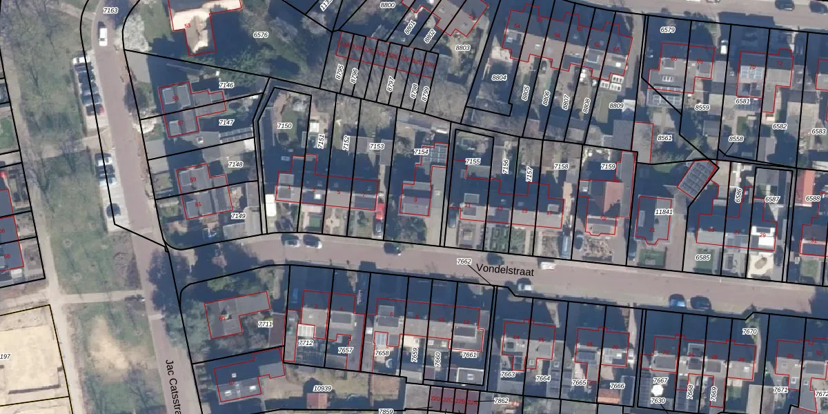 Vondelstraat 9 is gelegen op kadastraal perceel PTN01C7154. Deze kadastrale aanduiding is uniek en wordt gebruikt door het Kadaster om eigendomsrechten en andere zakelijke rechten vast te leggen. Het perceel maakt onderdeel uit van de kadastrale gemeente Putten.
