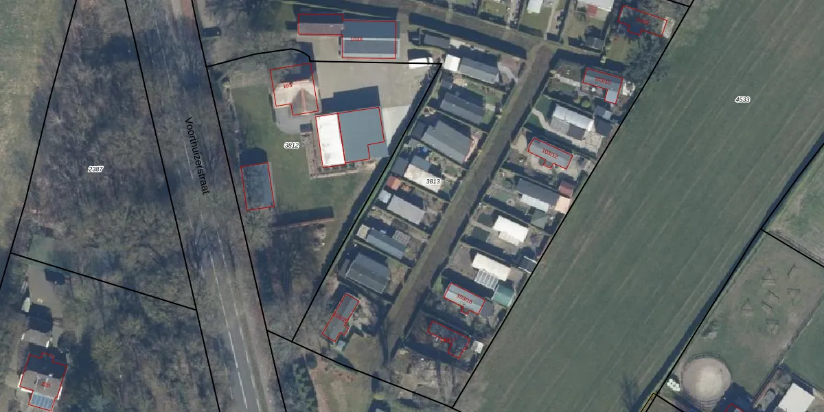 Voorthuizerstraat 103-23 is gelegen op kadastraal perceel PTN01D3813. Deze kadastrale aanduiding is uniek en wordt gebruikt door het Kadaster om eigendomsrechten en andere zakelijke rechten vast te leggen. Het perceel maakt onderdeel uit van de kadastrale gemeente Putten.