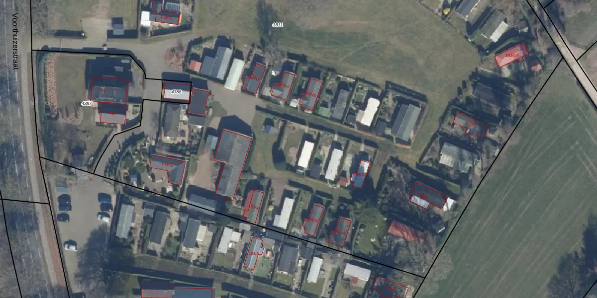 Voorthuizerstraat 103-39 is gelegen op kadastraal perceel PTN01D3811. Deze kadastrale aanduiding is uniek en wordt gebruikt door het Kadaster om eigendomsrechten en andere zakelijke rechten vast te leggen. Het perceel maakt onderdeel uit van de kadastrale gemeente Putten.